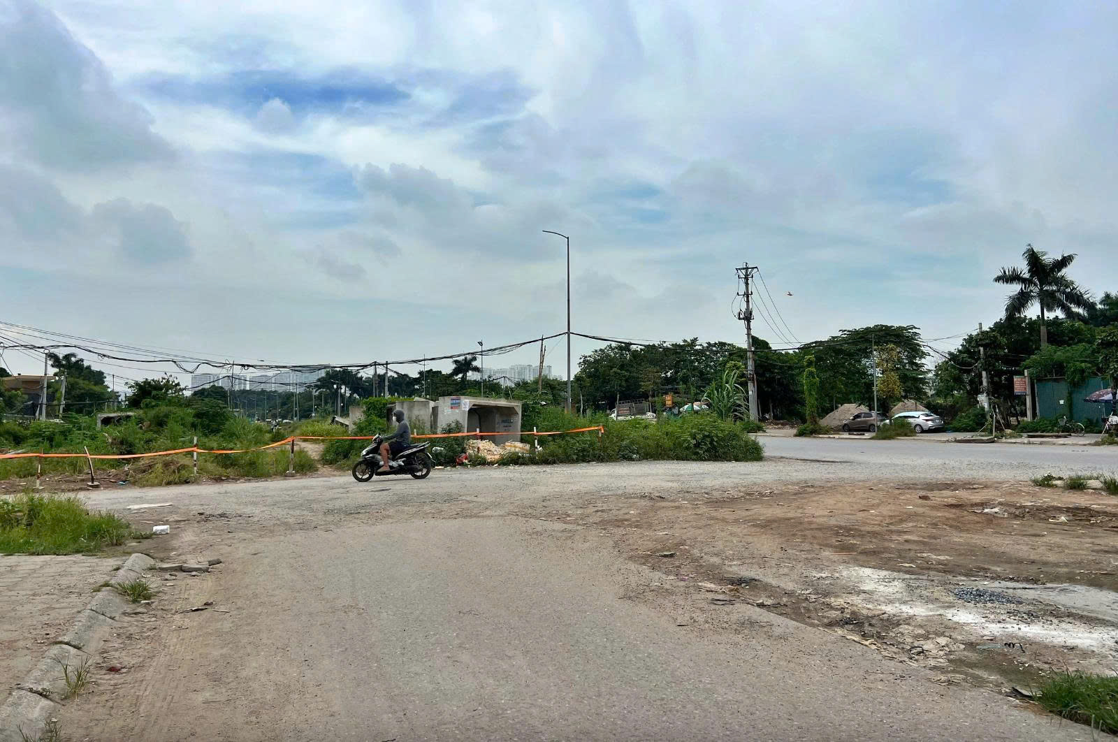 (Dây phản quang được giăng tạm bợ cảnh báo khu vực thi công dở dang của dự án)